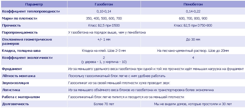 Может показаться, что эти разновидности ячеистого бетона обладают набором практически одинаковых свойств. Однако разница между ними есть и она существенна. Проведем сравнение по наиболее значимым характеристикам.