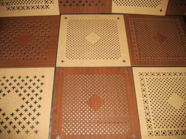 - Перфорированная. Поверхность имеет множество фигурных отверстий, структура продукции позволяет делать выпиливание без повреждений.
