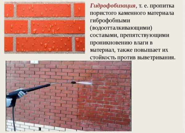 1. Поверхностный. Средство наносят на материал и при высыхании появляется пленка, которая является защитой для поступления воды в поры. Их применяют при работе с готовыми объектами строительства.