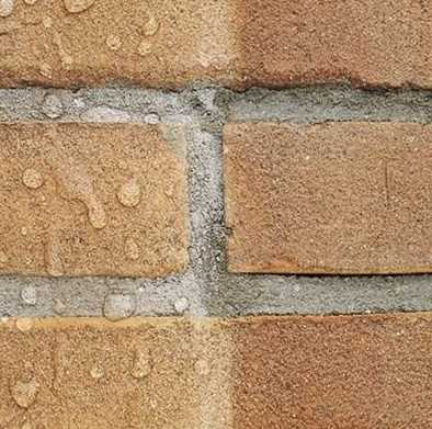 Капли воды на поверхности кирпича, обработанного гидрофобизатором
