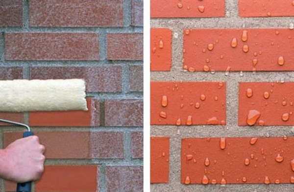 Не рекомендуется наносить гидрофобизатор под краску. На поверхность с водоотталкивающей пропиткой краска ляжет неровно. Водоотталкивающим раствором стена обрабатывается только после окрашивания.