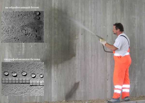 - объемную – гидрофобизирующий раствор добавляют на стадии изготовления бетонных конструкций, в процессе монтажа или при ремонтных работах. Данный вид гидрофобизации обеспечивает надежную защиту строительного материала по всему его объему.