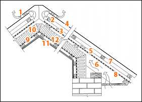 | Рис. 1. Схема монтажа материалов «Изоспан А» на утепленной наклонной кровле | Рис. 2. Устройство утепленной мансардной кровли с применением материалов Изоспан А |