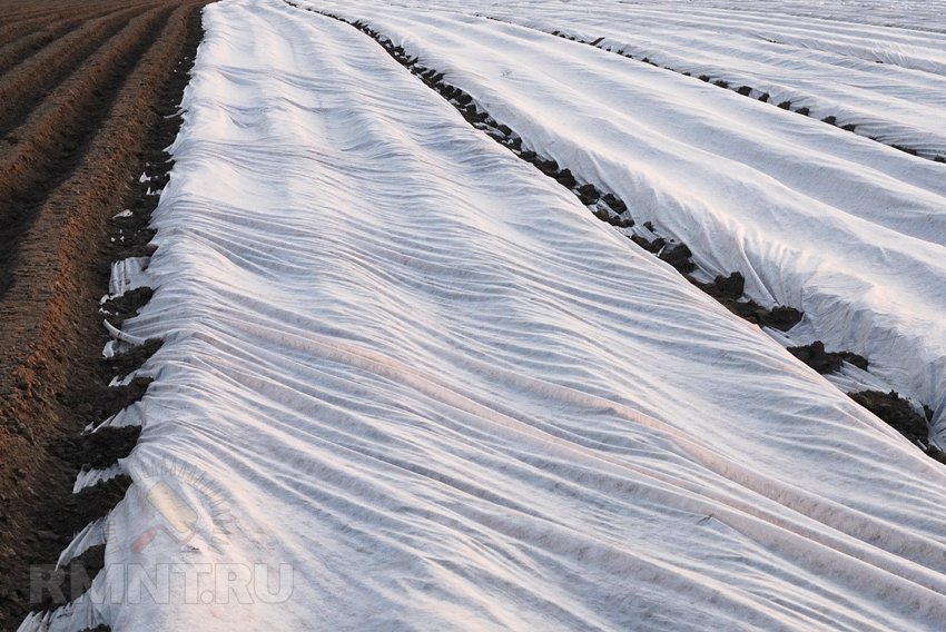 Грядки укрывают лутрасилом сразу после посадки или посева рассады.
