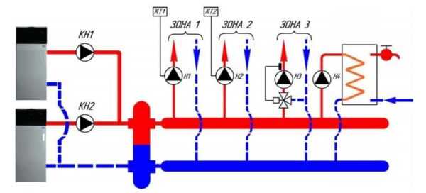 Система отопления современного жилого дома многофункциональна. В функции системы могут входить: приготовление горячей воды, подогрев бассейна, тёплые полы, радиаторное отопление, подогрев воздуха в системах вентиляции и т.д. И все эти функции должны осуществляться независимо друг от друга по времени, расходу теплоносителя и разнице давления производимому насосами каждой отдельной подсистемы.