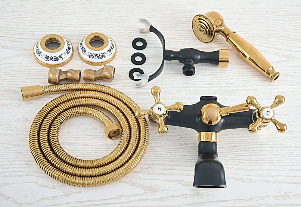 Для установки смесителя в ванной подведены трубы горячей и холодной воды на расстоянии 10 или 15 см от центра до центра с резьбой на концах. На них устанавливаются патрубки смесителя с гайками и декоративными крышками. Затем соединения на другие концы патрубков устанавливаются прокладки и гайками прикручивается корпус смесителя. Патрубки обычно имеют небольшой изгиб, что позволяет подогнать их расположение под смеситель путём вращения.