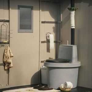 Одно из них предназначено для твердых отходов, второе – для жидких. Урина, попадая в первое отделение, выводится в канализацию или специальную емкость. Твердые отходы попадают в другое отделение, оборудованное вытяжкой. Вентилятор высушивает их, одновременно удаляя грязный воздух.