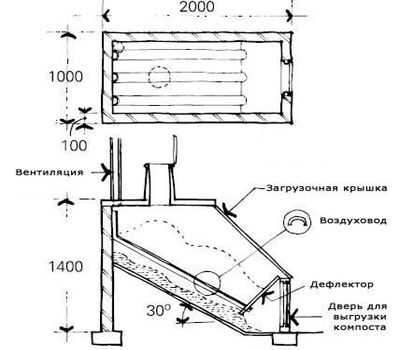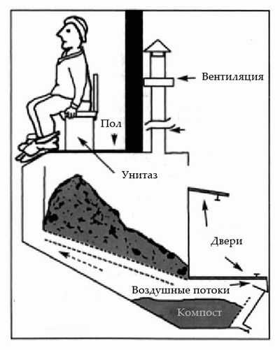 Идея переработки биологических отходов в компост возникла давно. Для этого накопительная емкость устанавливалась непосредственно под отверстие туалета. По мере накопления продуктов жизнедеятельности ее содержимое выливалось в компостную яму.