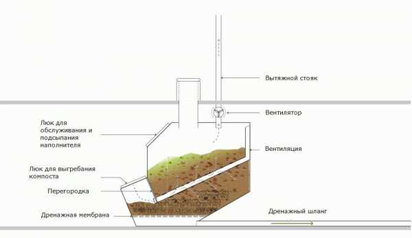 В зависимости от выбранной конструкции биотуалета получение основы для компоста может происходить при отделении влаги или с ее участием.