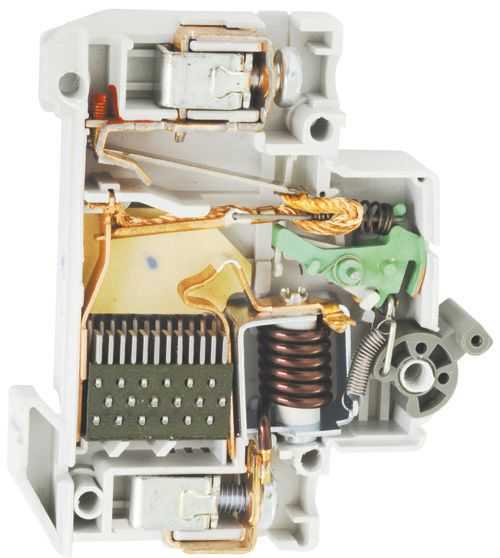 Время отключения защиты от перегрузки прямо зависит от силы тока перегрузки. В корпусе автомата имеется также дугогасительная камера, которая предназначена для гашения искры и увеличивает срок службы контактов.