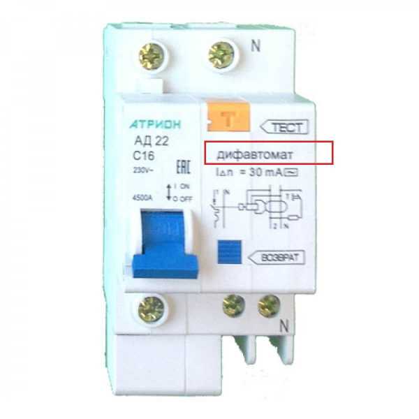 - Прямое указание производителя. Иногда прямо на корпусе пишется «Дифавтомат» или «УЗО»