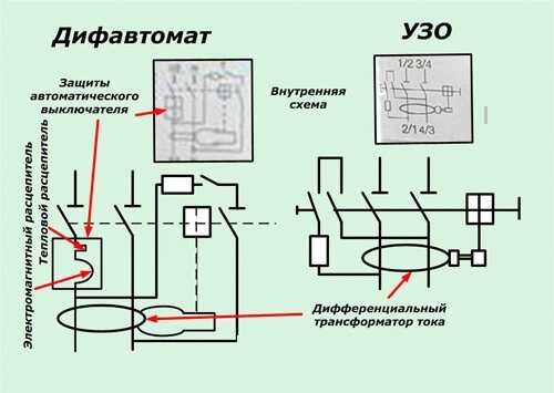 Отличие УЗО от автоматического выключателя состоит в том, что имеет функцию защиты от тока утечки, автомат такую защиту не имеет. УЗО в своем составе содержит дифференциальный трансформатор, который определяет разницу тока фазового и нейтрального провода при утечке тока.