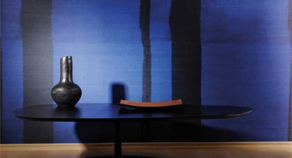 Виниловые обои на флизелиновой основе индиго в интерьере комнаты