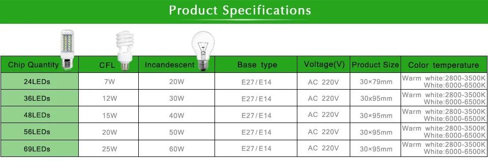 В настоящее время выпускаются светодиодные лампы практически под все существующие типы цоколей. Лампы выпускаются в основном невысокой мощности (до 20 Вт) и предназначены для установки в бытовые осветительные устройства — настольные светильники, потолочные светильники, бра — как быстрая замена менее экономичных традиционных ламп без изменения дизайна и конструкции. Производители кроме напряжения питания, потребляемой мощности и цоколя, указывают оттенок белого света (цветовую температуру), срок службы лампы и мощность аналогичной лампы накаливания.