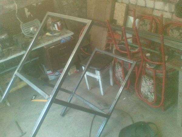 Из профильной трубы 30 х 30 мм сварил вот такую раму для стола циркулярной пилы.