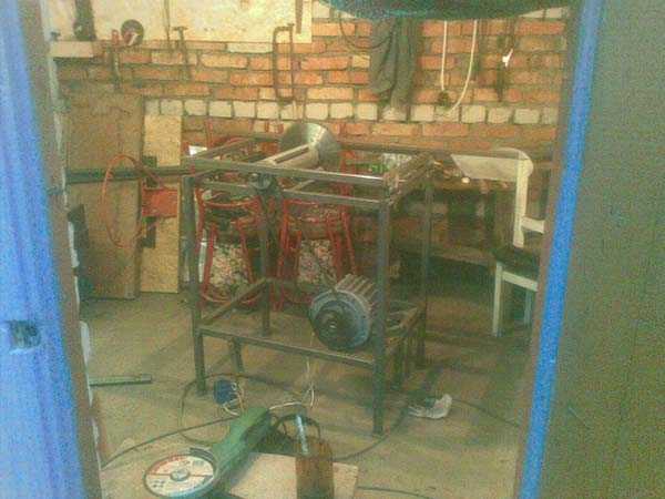 Сделал площадку под мотор, установил, одел ремень на шкив, проверил — работает.
