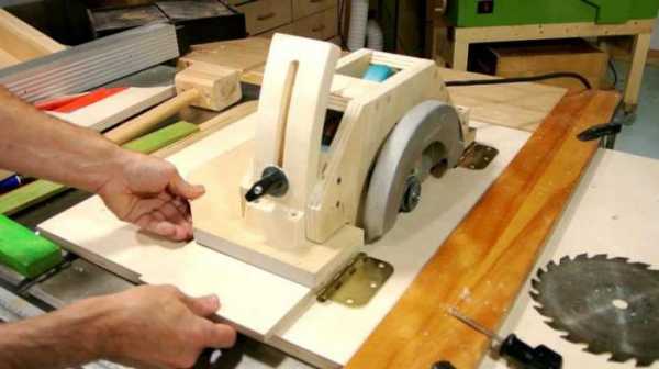 Для столяров. Подобные станки пилят точно и удобны в обращении, а потому востребованы у столяров. Заготовка кладется на стол, направляется по упору и разрезается диском. Можно пилить как вдоль, так и поперек, а для распила под углом имеется отдельный регулируемый упор со шкалой. Диск можно наклонить в сторону.