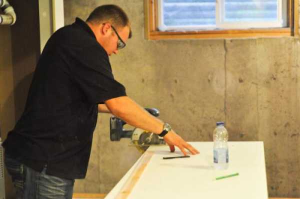 - Точное выпиливание проемов. С этой задачей справится и обычная циркулярка, однако погружная все сделает точнее. На подошве у нее имеются целики, которые позволяют точно позиционировать пилу (диск врежется строго по линии разметки). Еще один целик нанесен напротив режущей кромки оснастки. Ориентируясь на него, вы остановите пилу в намеченной точке, не оставив следов пиления за границами проема.