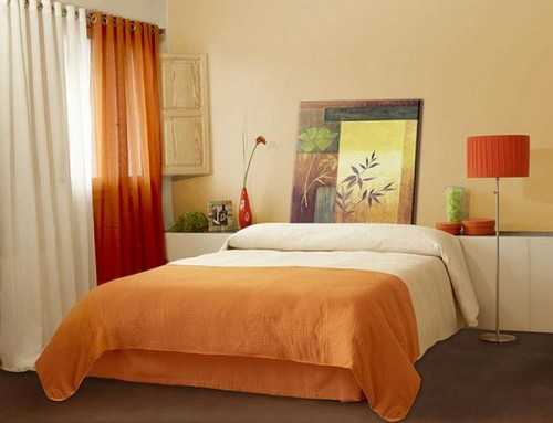 Если вы не хотите, чтобы комната была слишком яркой, используйте более светлые обои, а аксессуары, текстиль приобретайте в тонах спелого абрикоса. Добавив различные аксессуары и обои со сложными рисунками, вы сможете создать интерьер в восточном стиле.