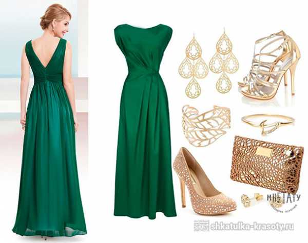 Брюнеткам рекомендуется попробовать вариант образа, который будет состоять из лишь оттенков зеленого цвета — изумрудное платье, аксессуары. Если же такой вариант покажется вам слишком однообразным, то добавьте к нему несколько деталей желтого, золотого или охристого цветов.
