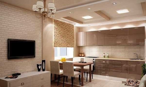 К числу положительных сторон бежа в интерьере кухни относится следующее: