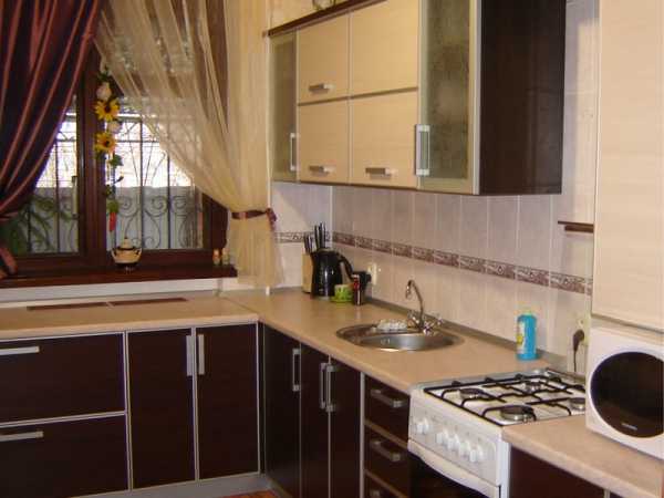 Если кухня маленькая, то от темного оттенка коричневого лучше отказаться, а подобрать более светлый. Цвет венге предпочтителен для больших просторных помещений, иначе и так небольшая площадь визуально еще больше уменьшится. Тот цвет, который темнее, используют для штор, обеденной зоны, столешницы, деталей гарнитура.