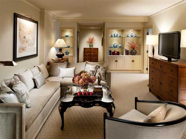Самый нейтральный цвет – бежевый. Он не режет глаз, не возбуждает и не вгоняет в сонное состояние. Люди, не имеющие жестких цветовых предпочтений, часто оформляют гостиные в бежевых тонах: в такой комнате будет чувствовать себя комфортно любой член семьи или гость, независимо от темперамента и вкусов.