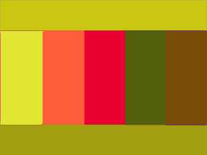 Красный и зелёный как комплиментарные (дополнительные) цвета, обладая равными пространствами своего цветового поля, создают ощущение устойчивой, прочной гармонии.