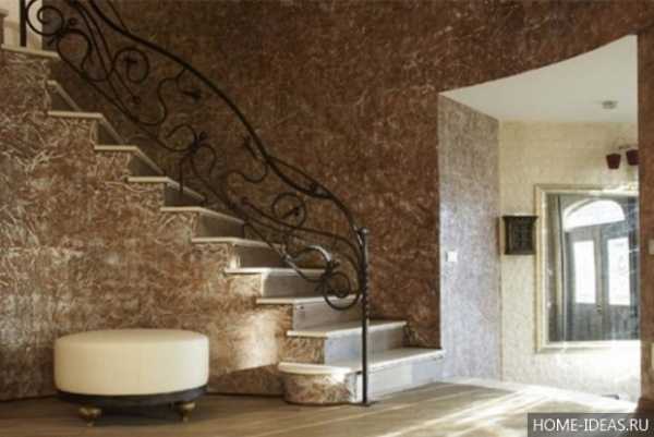 Обработанная поверхность приобретает вид монолитного дорогого мрамора или оникса, передаются даже незначительные детали натурального камня. Эта работа по силам только мастерам с художественной ноткой. Процесс довольно длительный и тщательный. Никакое фото не способно передать и ничтожной доли всей красоты. Цена такой отделки интерьера выльется в существенную копеечку, но оно того стоит.