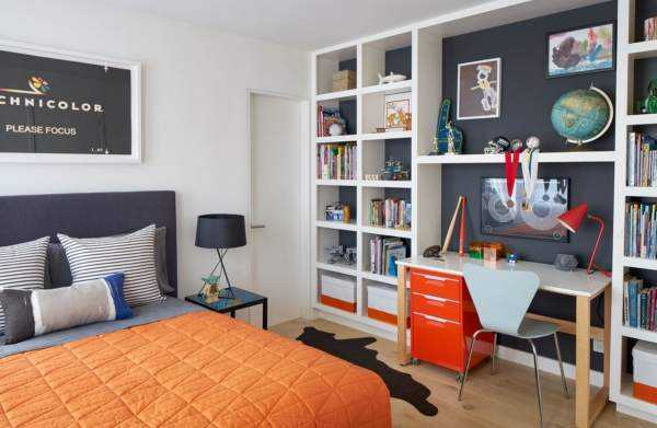 2. Интересные цвета для детской комнаты мальчика — оранжевый и синий