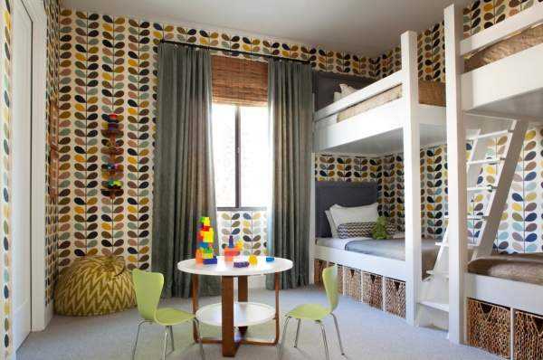 Отличный способ порадовать детей, не прибегая к необходимости выбирать лишь один или два цвета для детской комнаты — это выбрать сразу все, ну или почти все оттенки радуги. Идя на этот смелый шаг, попробуйте оформить стены в какой-нибудь нейтральный цвет, а также использовать в интерьере детской комнаты по крайней мере один разноцветный предмет, например ковер, шторы или обои. Пример как это было сделано в детских комнатах смотрите на фото в этой статье!