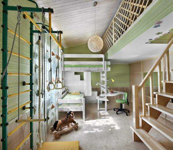 Цветом можно разделить детскую на зоны – отдыха, игры и учебы, занятий спортом и т. д. К примеру, в игровой пусть преобладает желтый, в спальной – зеленый либо голубой.