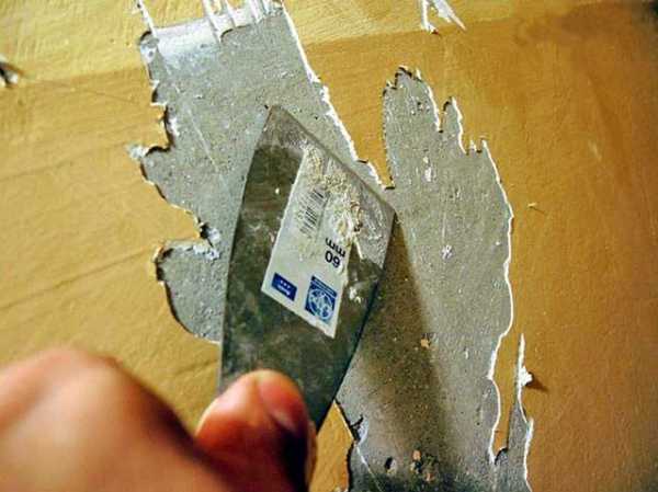 - Обои отмачиваются и аккуратно сдираются с помощью металлических шпателей.