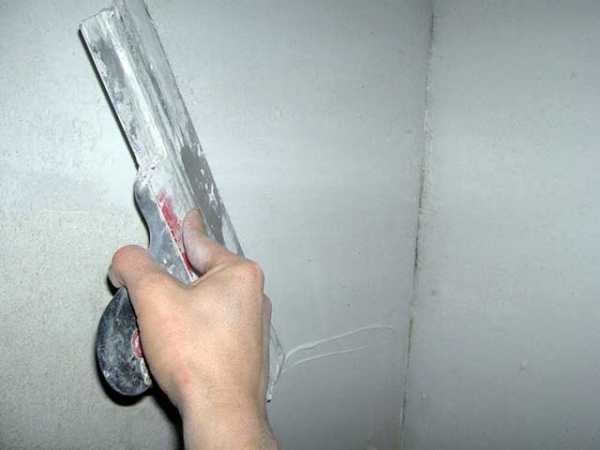 - Наложите состав тонким слоем (максимум — 3 мм), стараясь выравнивать углубления. Инструмент – широкий металлический шпатель.