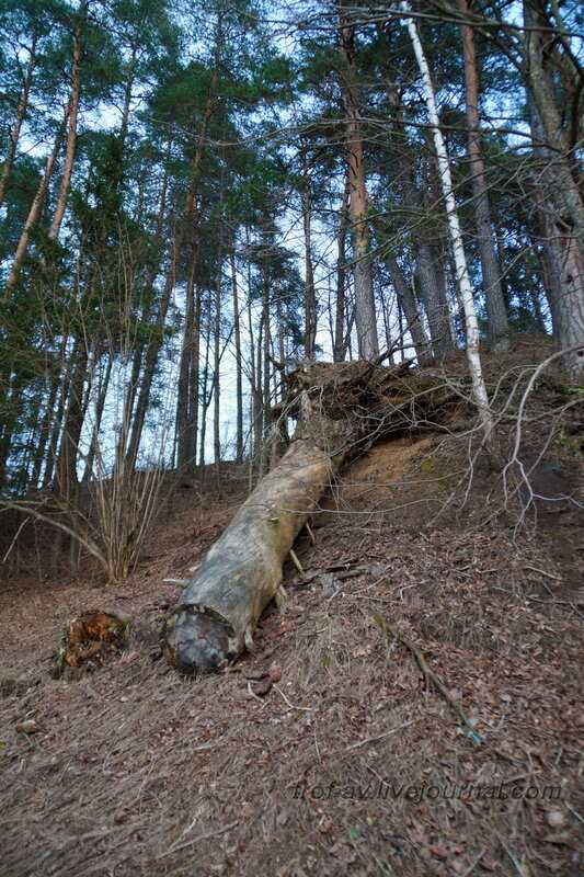 68. Дорога от реки к замку Щербатовых. Внизу дорога, а над ней на возвышенности кто-то заботливо бревен сложил. Готовятся к осаде?