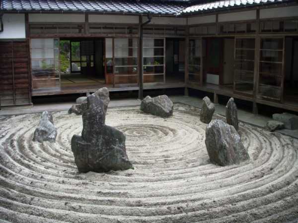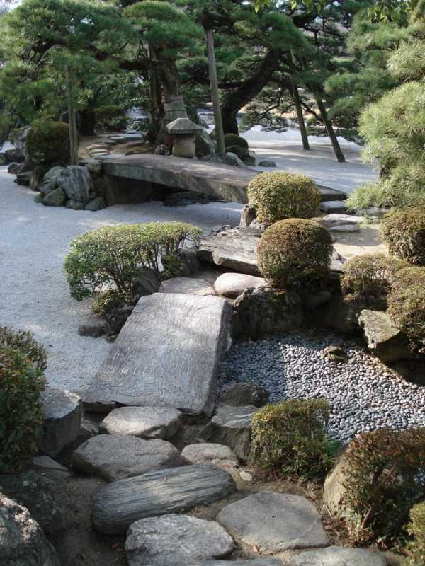 Следует позаботиться об уравновешивании горизонтальных и вертикальных линий в саду. Камни символизируют природную силу и красоту, а небольшое количество растений лишь подчеркнет их форму.