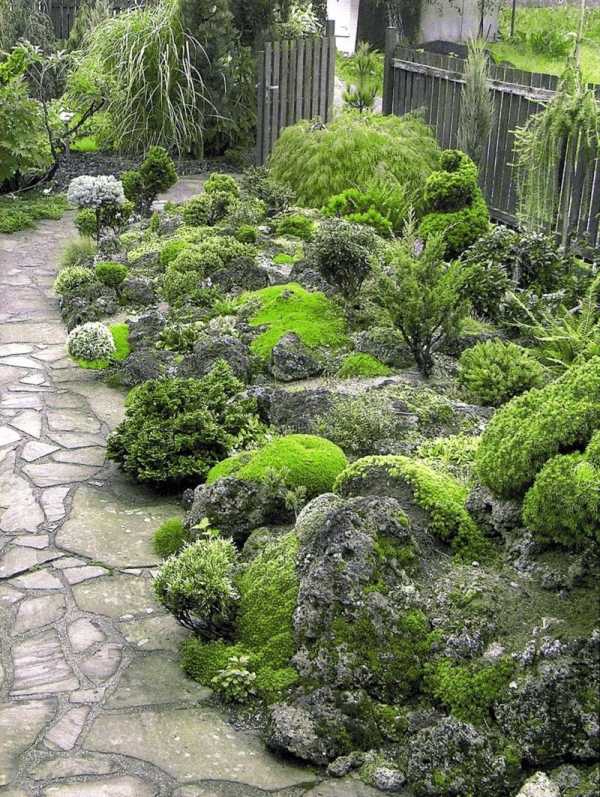 Если на участке окажется слишком много камней, можно помочь некоторым из них покрыться зеленым мхом. Этот способ подойдет для создания гармоничного дизайна.