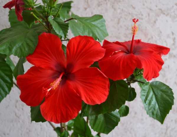 - Гибискус. Популярный среди флористов кустарник с богатым ассортиментом сортов с различной окраской и формой цветов, в том числе и ярко-красными. Нетребователен ко влажности воздуха, пересаживать растение следует не чаще, чем раз в 2-3 года.