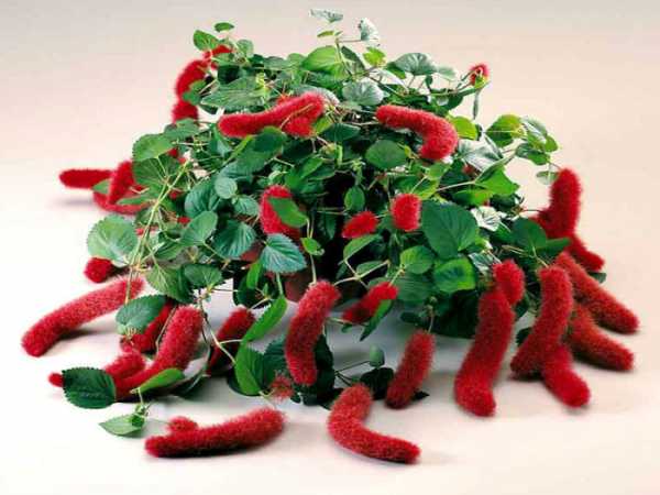 - Акалифа. За соцветия оригинальной формы акалифу называют также «лисьим хвостом». Кустарник достигает высоты 80 см. Для посадки требуется вместительная емкость, поскольку у акалифы развитая корневая система. Не выносит прямых солнечных лучей, однако нуждается в ярком освещении.