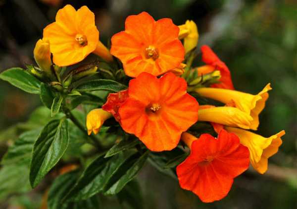 - Стрептосолен. Вечнозеленый тропический кустарник с густой кроной родом из Колумбии. Цветы яркие, собранные в соцветия. Без обрезки достигает в высоту до 2 м, однако крона отзывчива к формированию. Стрептосолен чувствителен к холоду – температура воздуха в помещении зимой не должна опускаться ниже 13 градусов.