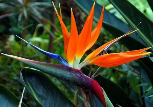 - Стрелиция. Декоративное растение с эффектными цветками, завезенное из Африки в Англию в ХVIII веке для украшения королевского дворца. Цветки по внешнему виду напоминают тропических птиц.