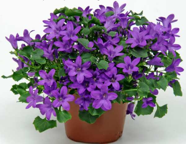 - Кампанула. Растение получило свое название, которое переводится с латыни, как «колокол», из-за формы цветов. Подходит для выращивания в домашних условиях в кашпо. Предпочитает обильный частый полив и опрыскивание в летнее время.