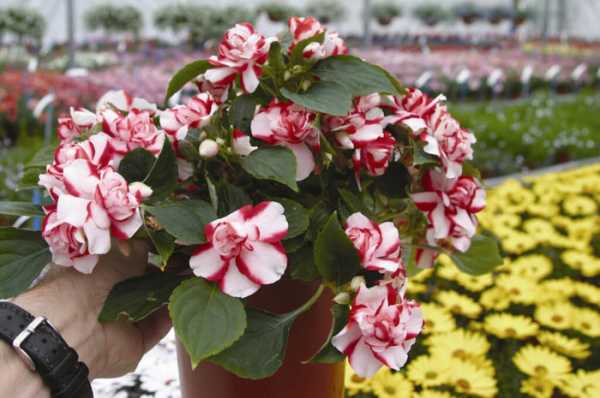 - Бальзамин. Этот любитель влаги и теневой стороны ещё называется «Ванька мокрый». Он способен цвести даже на северной стороне дома в прохладе. Куст растения усыпан мелкими цветочками, больше напоминающими розочки, махровую гвоздику или камелии.