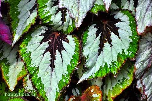 - Бегония. Ещё один постоянно цветущий вид. Любит тепло, влагу, но не выносит опрыскивание. Чтобы поддерживать нормальную влажность в зоне выращивания, поставьте между горшками ёмкости с водой. Температура выращивания должна быть +17 и выше. Требуется рассеянное освещение, избегайте открытого солнца.