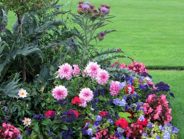 Из высокорослых видов цветов высаживают живую изгородь, которая смотрится пышно и ярко.
