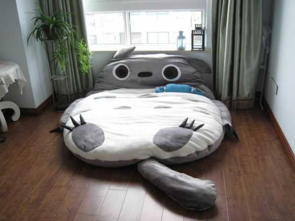 В пространстве для ребенка могут размещаться большие мягкие игрушки, которые в большинстве случаев выполняют роль кресел, кровати и мини-диванов. Они могут быть контрастными, главное, чтобы были выполнены из качественного и экологичного материала.