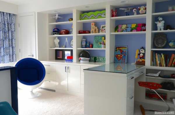 Если речь идет уже о боле взрослом возрасте, то в комнате обязательно должна быть кровать, стол для занятий, который может быть использован по совместительству как компьютерный стол. Таким образом, если вы не планируете устанавливать несколько разных столов, то следует хорошенько продумать его размеры, чтобы ребенок мог спокойно за ним и играть на компьютере и заниматься. Так как дети и порядок — вещи не совместимые, необходимо заранее позаботиться о том, чтобы было много ящичков и полочек, куда бы ваш малыш мог бы складывать свои игрушки. Основными критериями при выборе мебели должны быть: