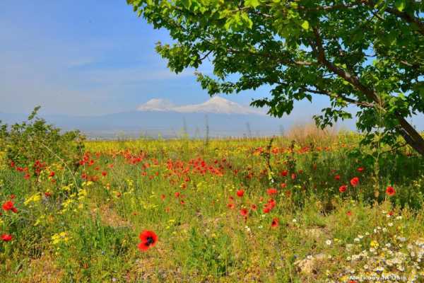 15. А на Араратском долине красные цветы занимают на сотни гектаров территория.