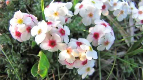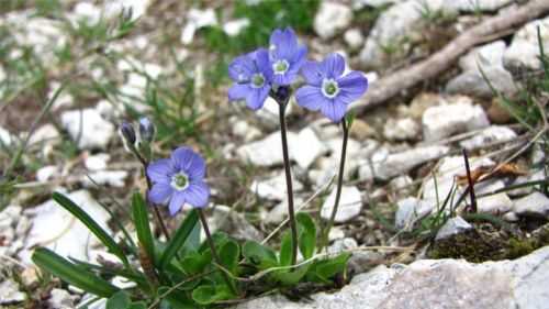 Название горных цветов известно не всем. Например, очиток с мясистыми листьями. Это цветок стойкий к суровой зиме и летнему отсутствию воды. Некоторые из горных цветов не ждут весны, начинают пробуждаться вместе с тающими снегами. Так растет сольданелла крохотная. Ее колосовидное соцветие растет в одиночестве. Растение небольшое, имеет цветочки фиолетово-розовые. Она растет в контрасте со строгими окрестностями. Почти в это же время появляются насекомые, которые опыляют горные цветы. Потихоньку уходит снег, листья у растения постепенно выходят. В это время цветок завязывает семена, образовывает листья, но уже для следующего года.