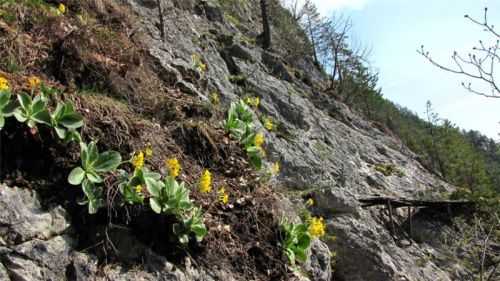 Но приходит весна, скалистые выступы начинают покрываться множеством По мере их роста образуется органическое вещество — гумус. Он очень плотный, под влиянием дождей может уплотниться, затем обрушиться к подножию скалы. Здесь цветы выживают, растут. Подножие скал покрывается однолетними горными цветами, морозоустойчивыми и разноцветными.